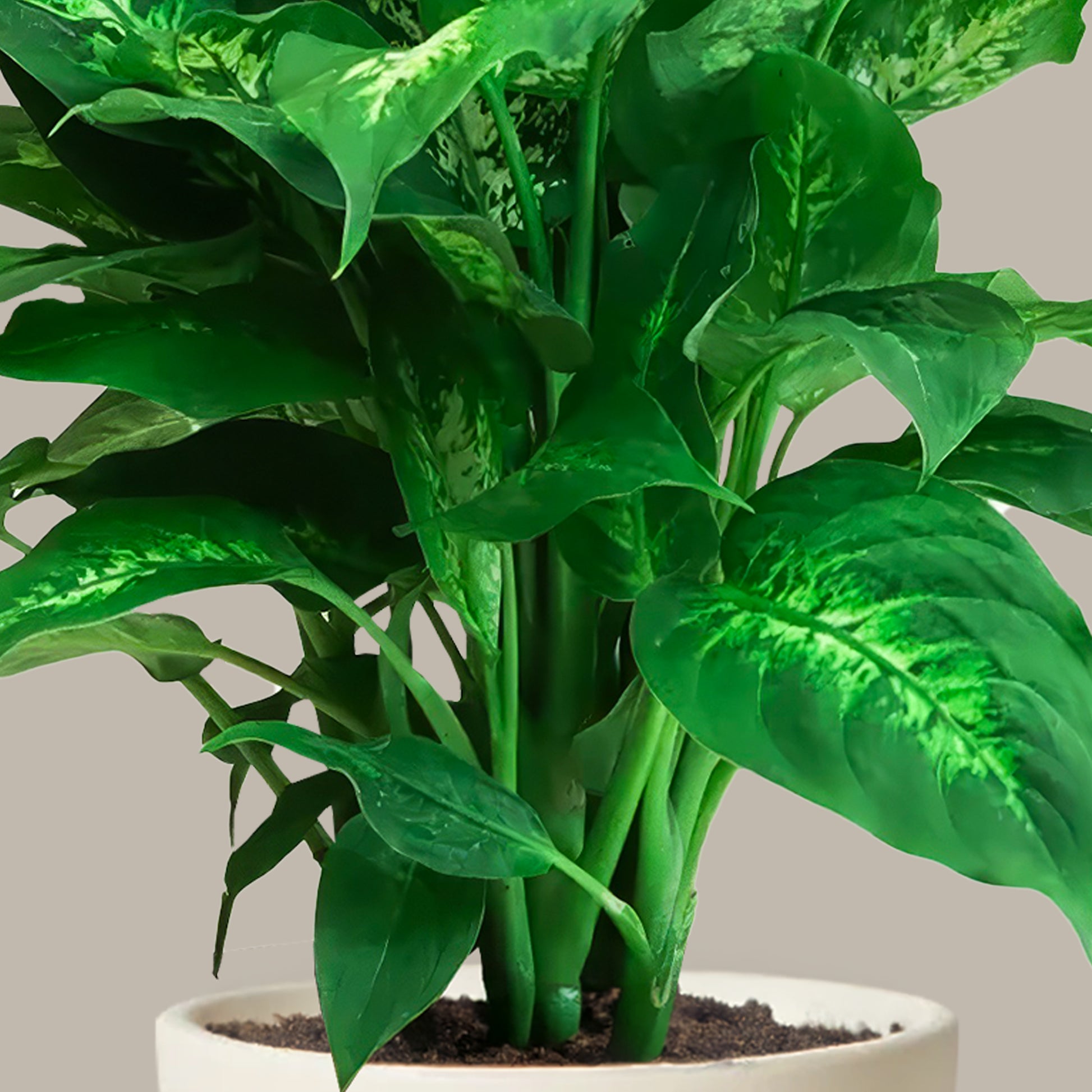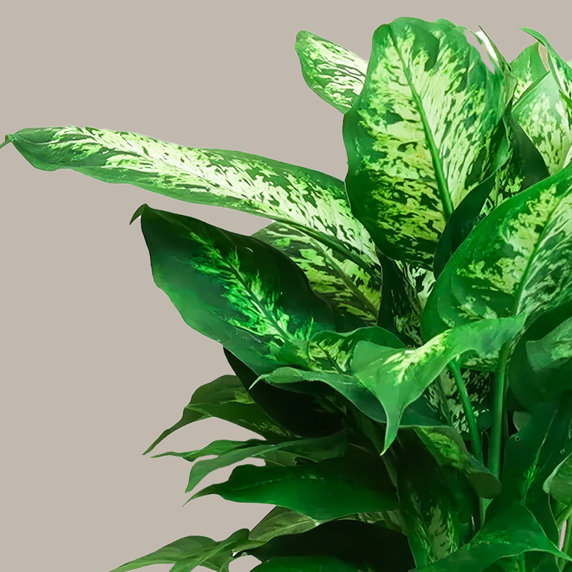 Ev veya ofis köşelerinde, sehpa kenarlarında ya da raflarda tek başına bile dikkat çekicidir. Difenbahya, aynı zamanda hava temizleme özelliği sayesinde iç mekân havasını tazeleyerek ortamda daha ferah bir his bırakır.